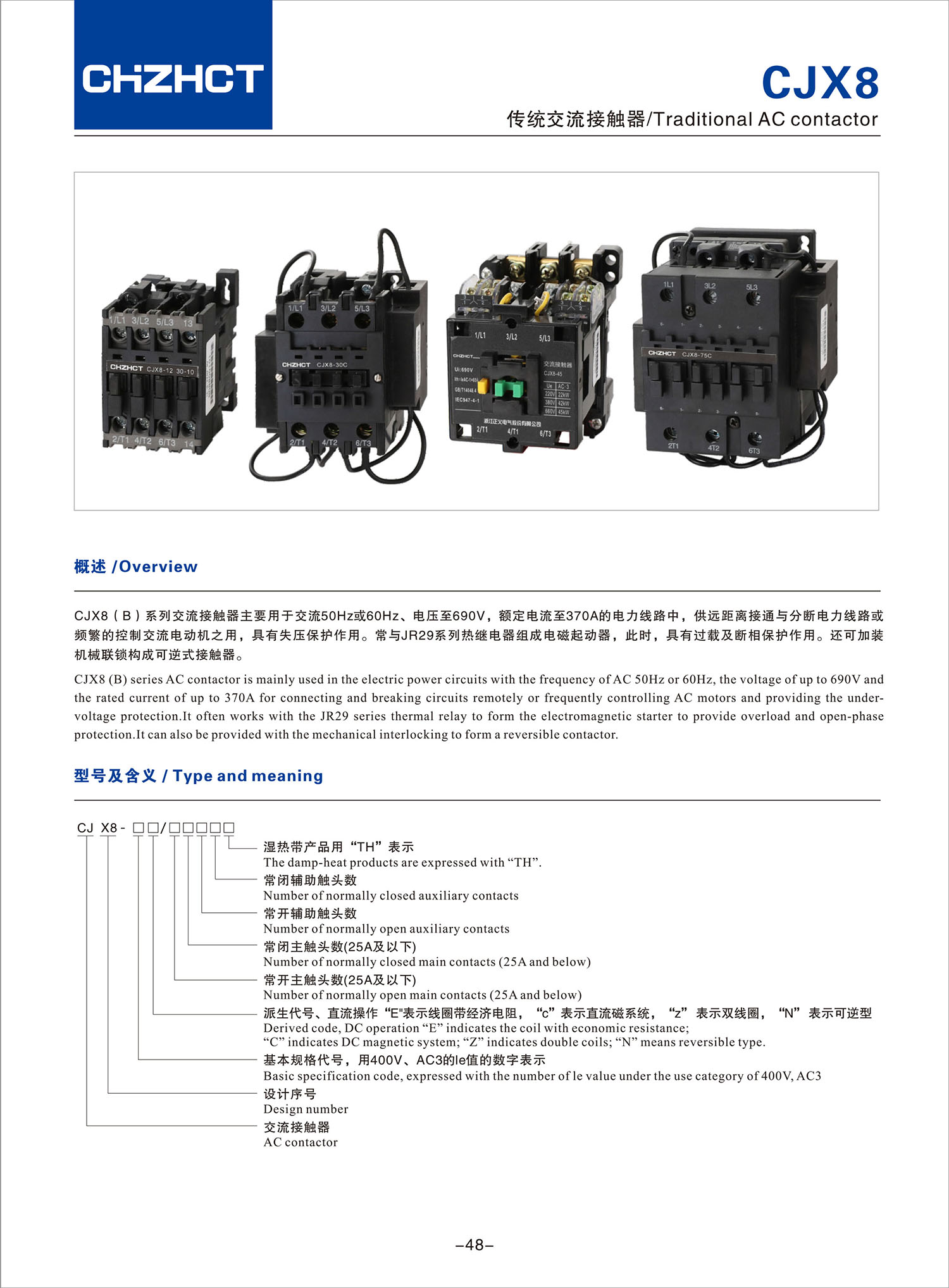 CJX8传统交流接触器产品说明书