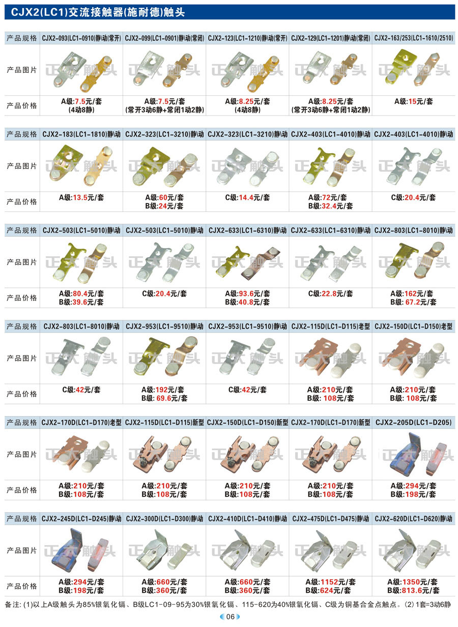 CJX4(LC1)、CJX5、CJ15交流接触器(施耐德)触头