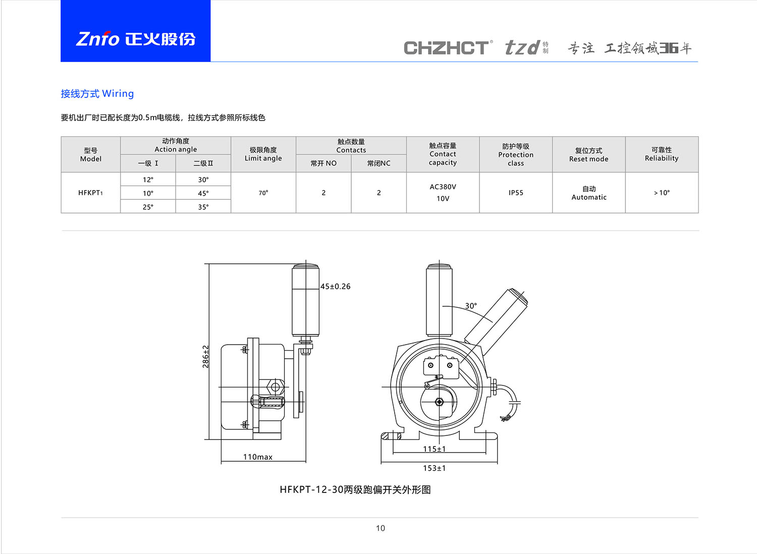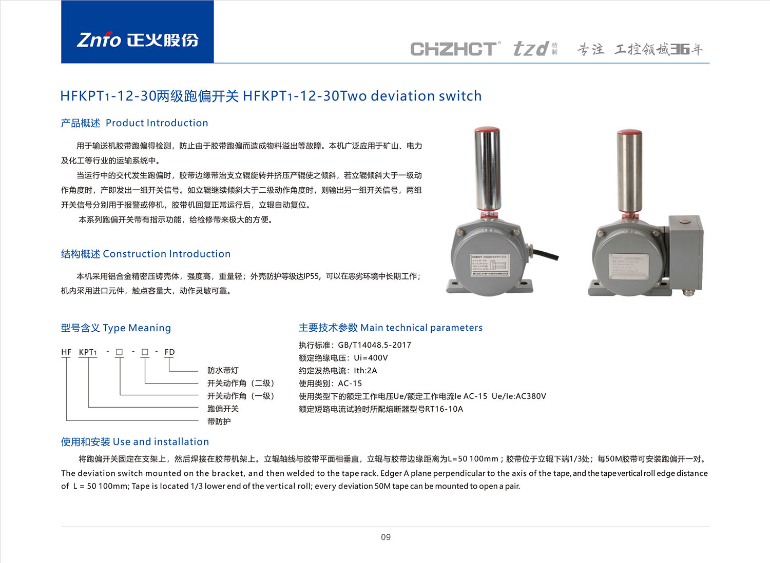 HFKPT1-12-30两级跑偏开关 _跑偏开关_行程/微动/跑偏/拉绳/超速_工业控制与保护_产品中心_leyu.乐鱼电气股份有限公司