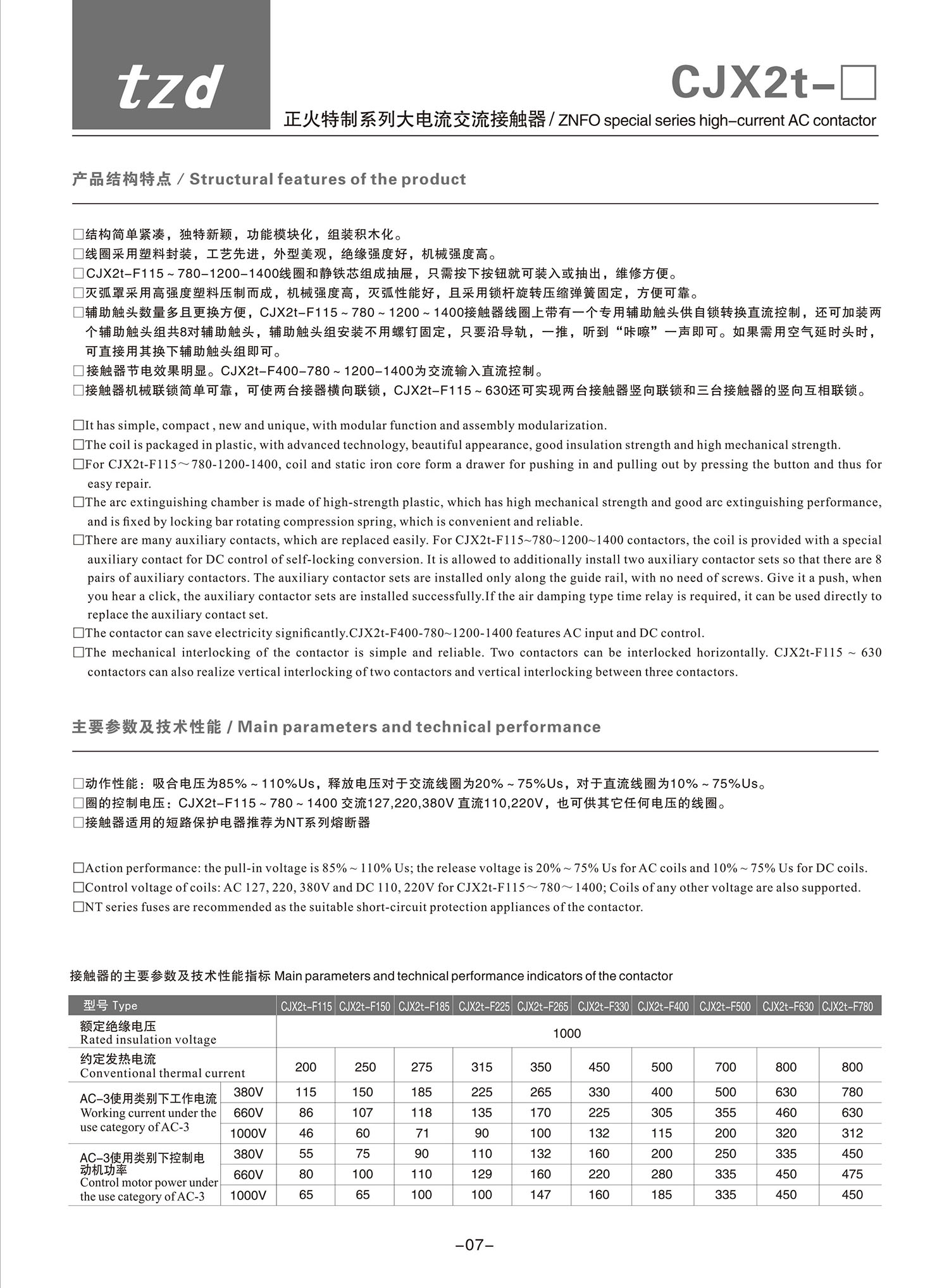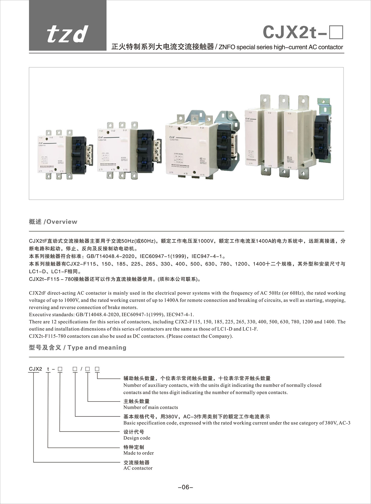 CJX2t-F 正火特制系列大电流交流接触器产品说明书
