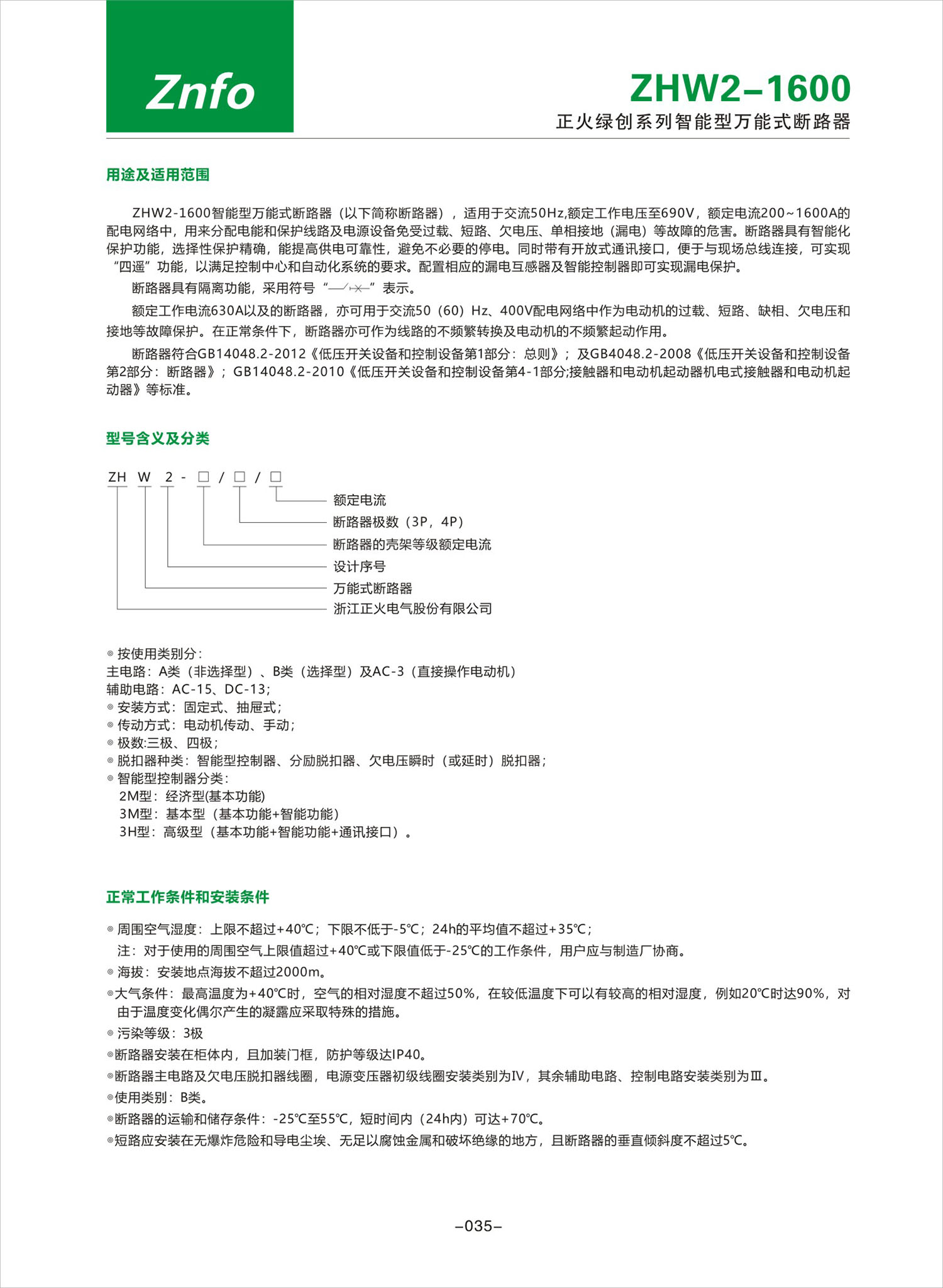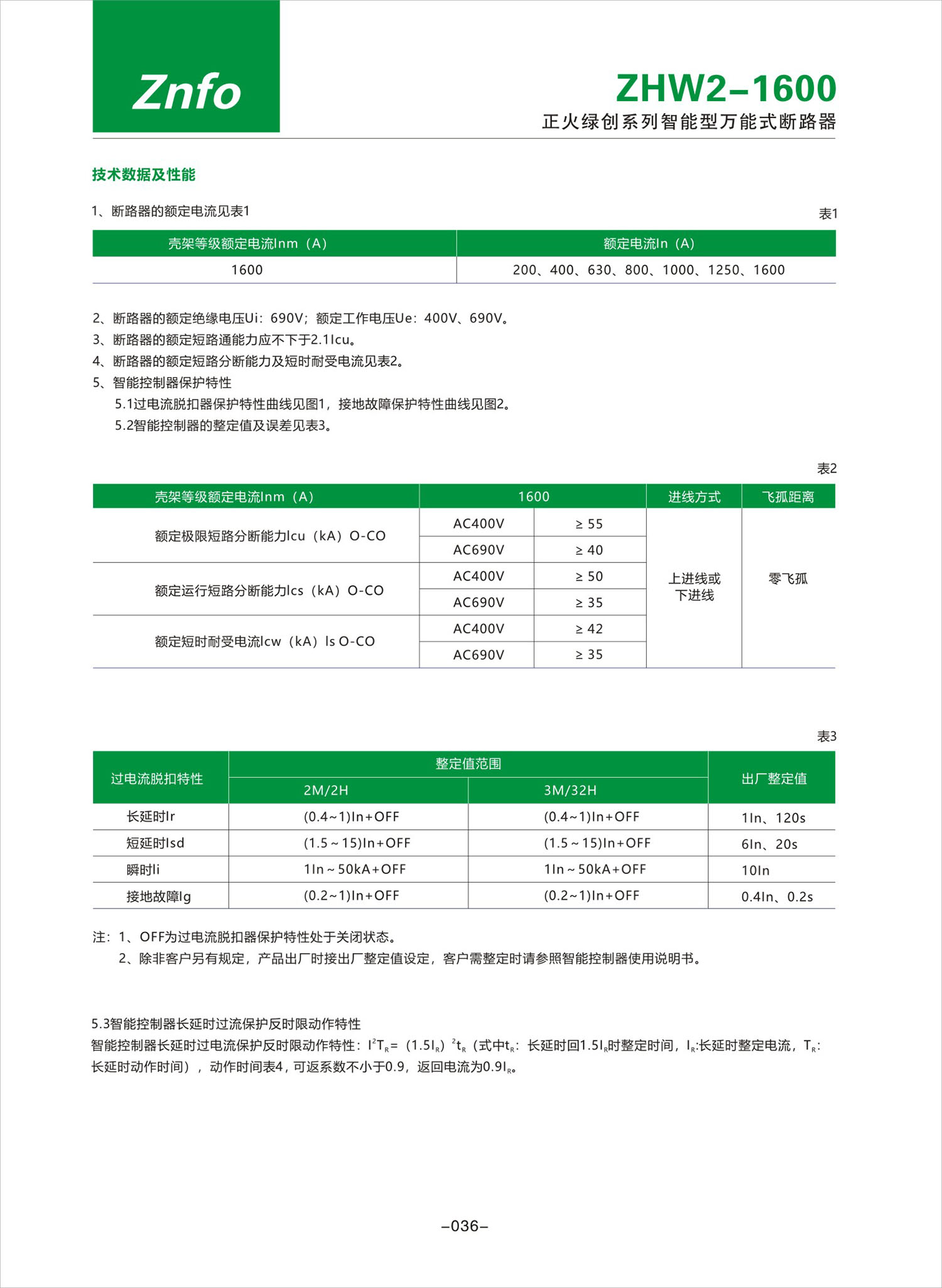 ZHW2-1600系列智能型万能式断路器产品说明书